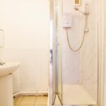 • Modern Bathroom: The stylish bathroom boasts contemporary fixtures and fittings, including a bath with an overhead shower, a wash basin, and a toilet, ensuring your comfort and convenience.