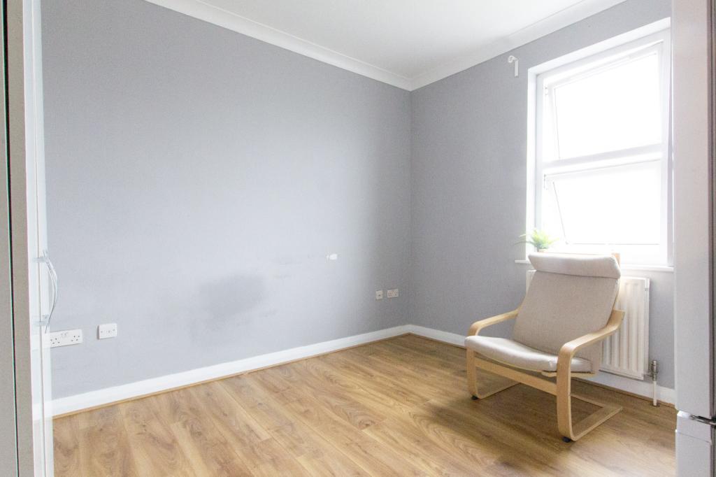 There are two good-sized bedrooms, both neutrally decorated and offering flexibility for use as a home office or guest room. The property also benefits from a stylish three-piece bathroom with shower over bath.