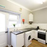 Upon entering via a private front door, you are welcomed into a bright hallway leading to a spacious living room featuring a charming bay window that fills the space with natural light. The modern kitchen comes fully fitted with ample storage and workspace, ideal for everyday cooking.
